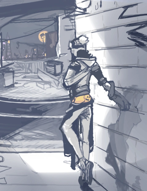 - In one of his first illustrations, he can be seen using his unsevered or 'corporeal arm' to lock arms with his shadow's severed left arm. The non-corporeal or phantom limb can be seen extending from the wall and hooked together with his living one. This appears to be in reference to his guardian form who possesses a shadowy or ghostly but functional arm in place of his missing one. The illustration makes use of the spinning dancer effect to pull off the swap in apparent arms.